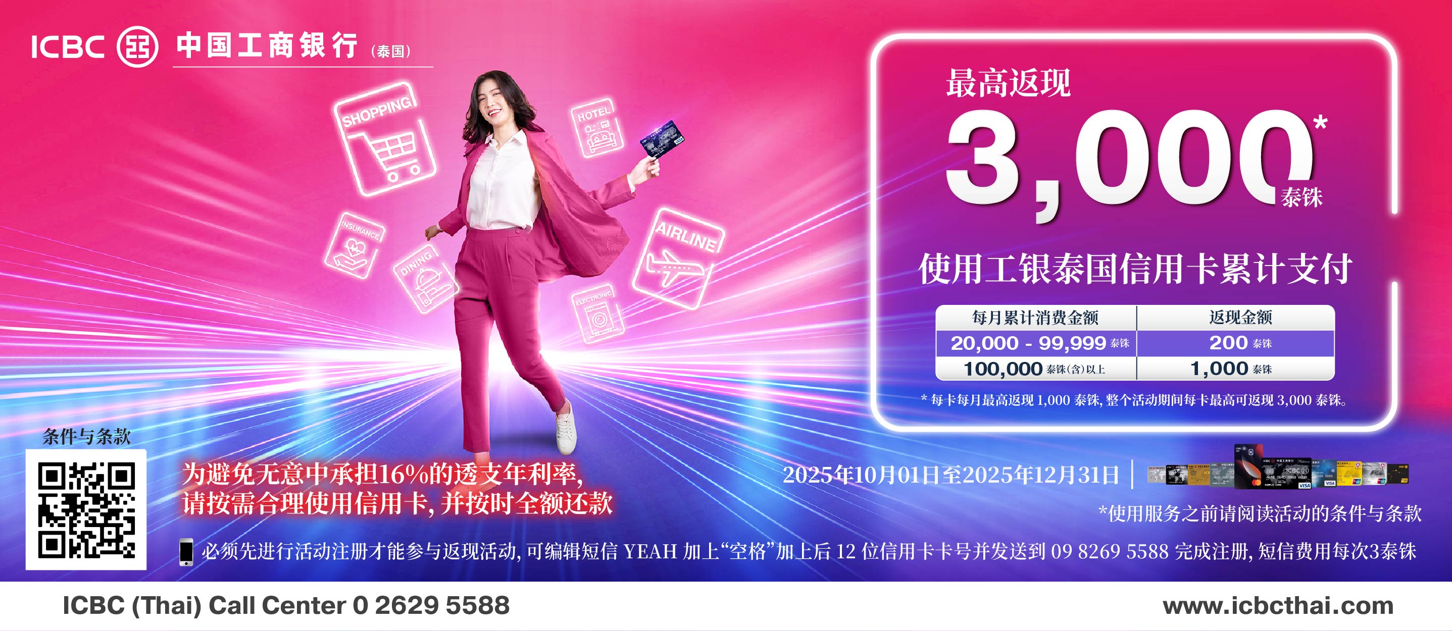 使用工银泰国信用卡累计支付, 最高返现 3,000 泰铢 (2025年10月01日至2025年12月31日)