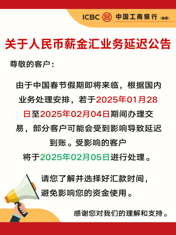 关于人民币薪金汇业务延迟公告
