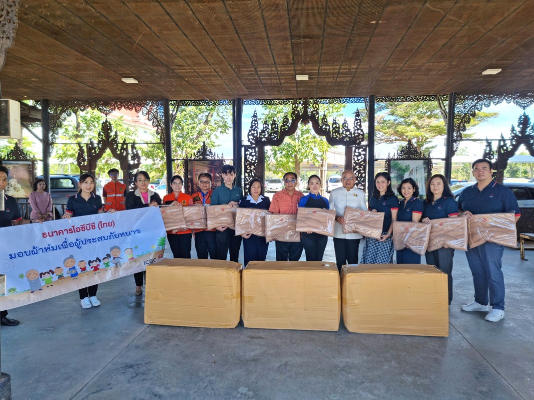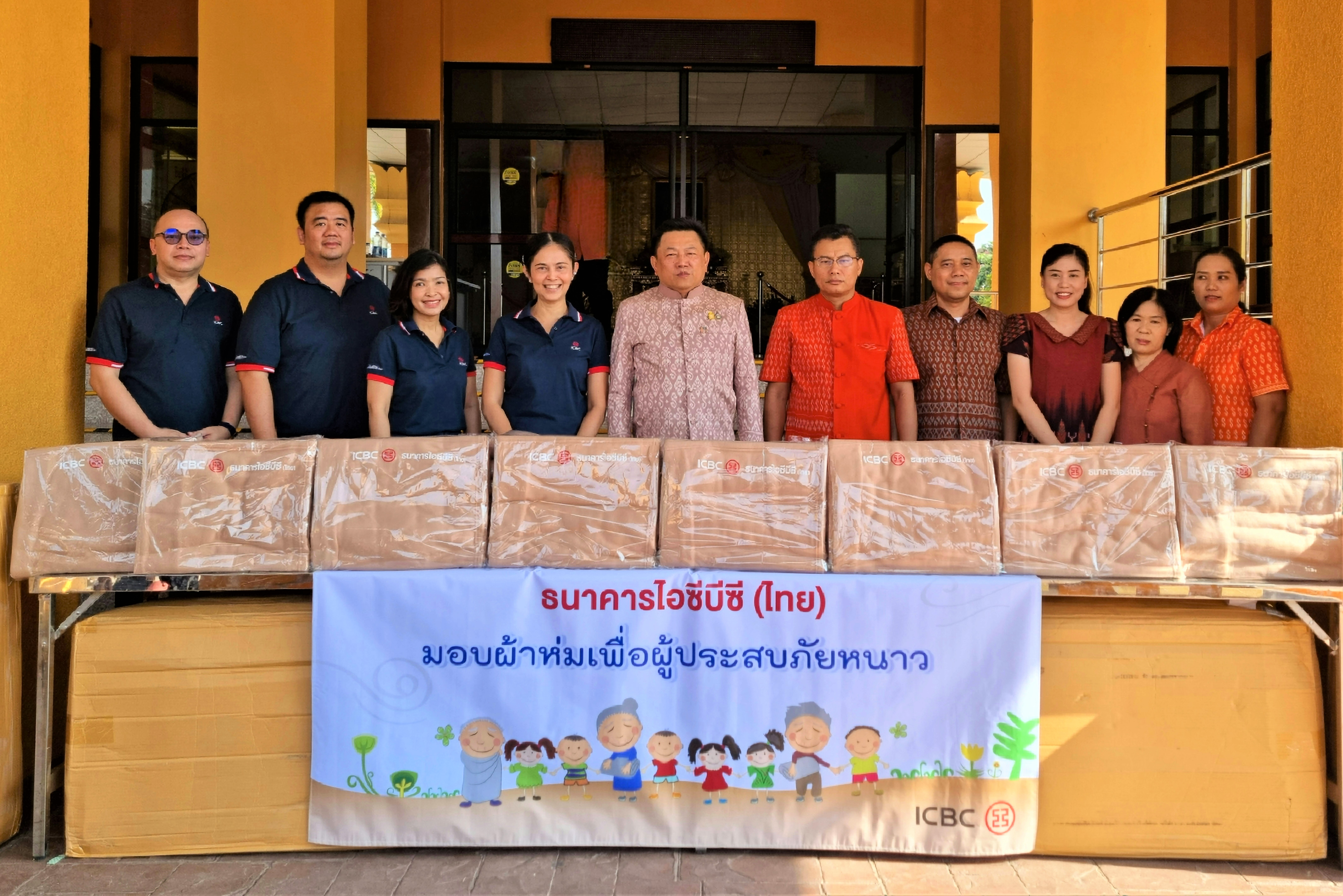 | In November 2023, Ms. Chittavadee Sangthong, Executive Vice President, Head of Branch Banking Division, was a representative of the Bank, donate blankets to Mr. Wanchai Kongkasem, Governor of Udon Thani, in order to donate blankets to cold sufferers in remote areas in the province. In addition, the Bank also donated blankets to cold sufferers in Ubon Ratcha Thani province and Chiang Mai province. Hence, ICBC (Thai) realizes the importance of good corporate governance and social responsibility to follow Sustainable Banking Policy. |