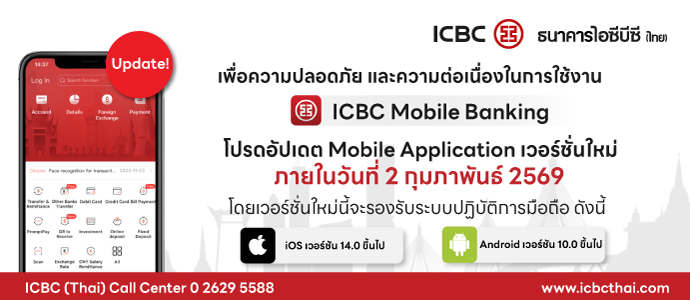 สอบถามรายละเอียดเพิ่มเติมโทร ICBC (Thai) Call Center 0 2629 5588